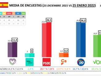 El PSOE modera su crecimiento en la última semana y el Partido Popular consigue recortar distancias ligeramente gracias a las caídas de Ciudadanos y Vox. El bloque de la derecha se mantiene con el 48 %, pese a un ligero retroceso en las últimas semanas, y aún estaría cerca de la mayoría absoluta.