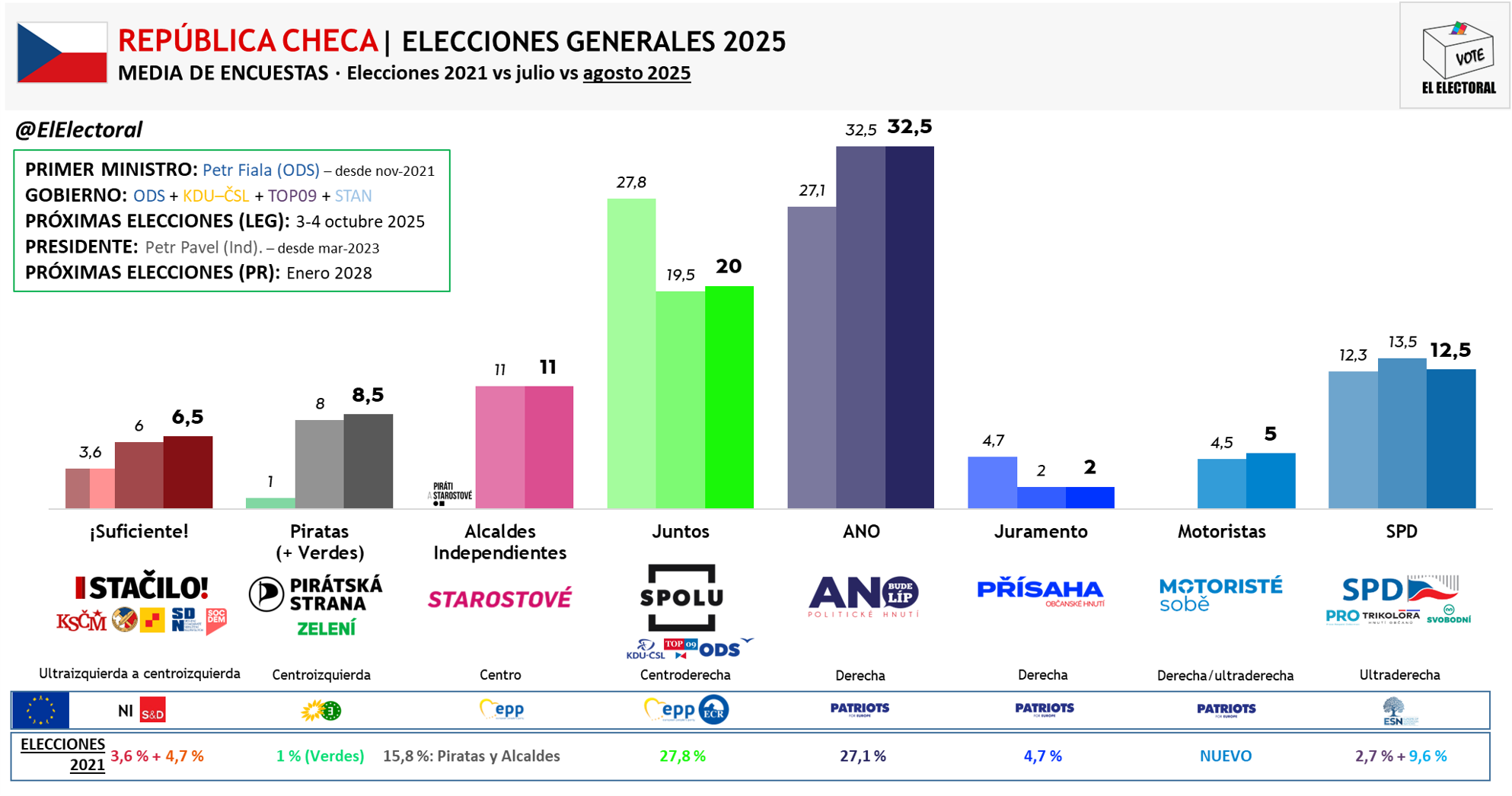 República Checa Media encuestas Agosto 2025