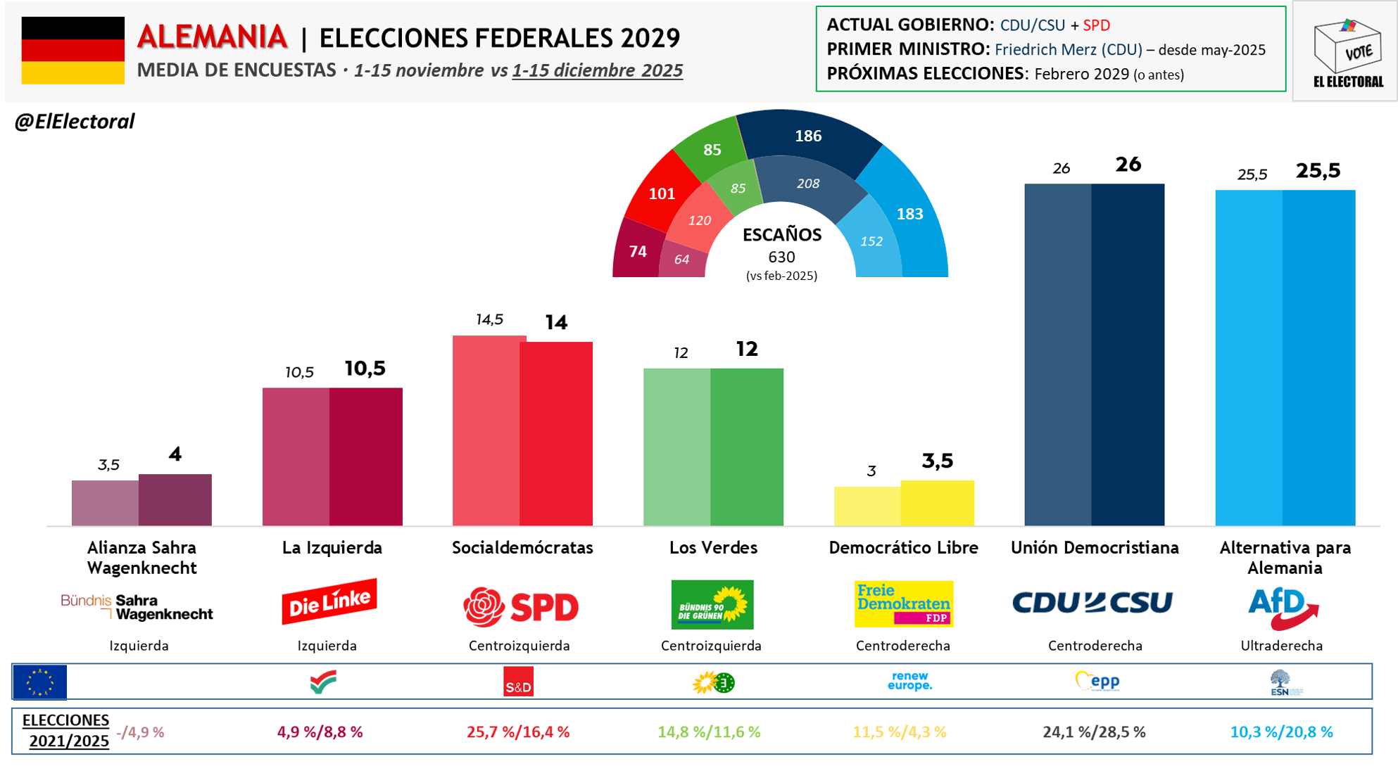 Alemania Media de encuestas 1-15 diciembre 2025
