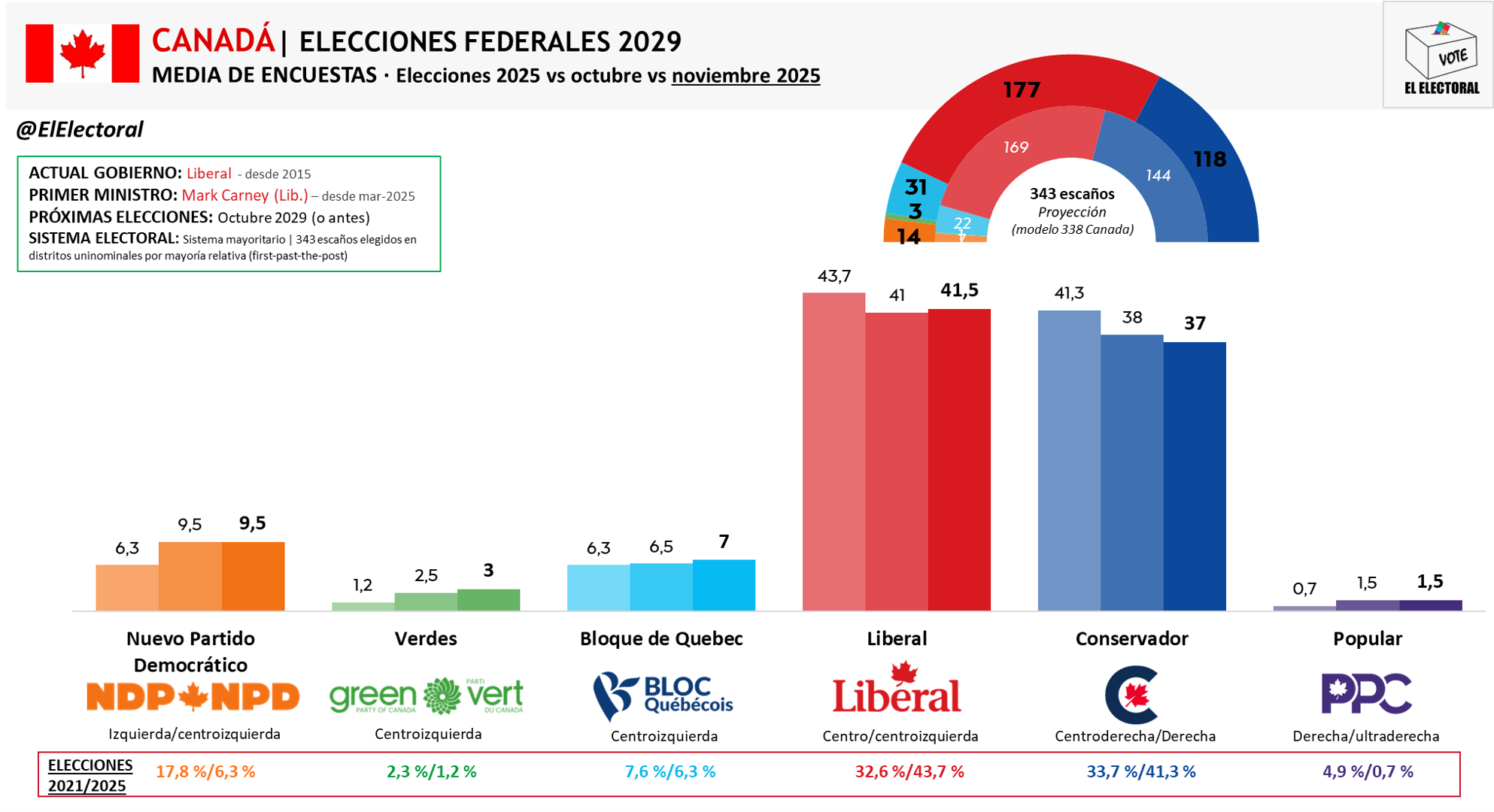 Canadá Media encuestas Noviembre 2025